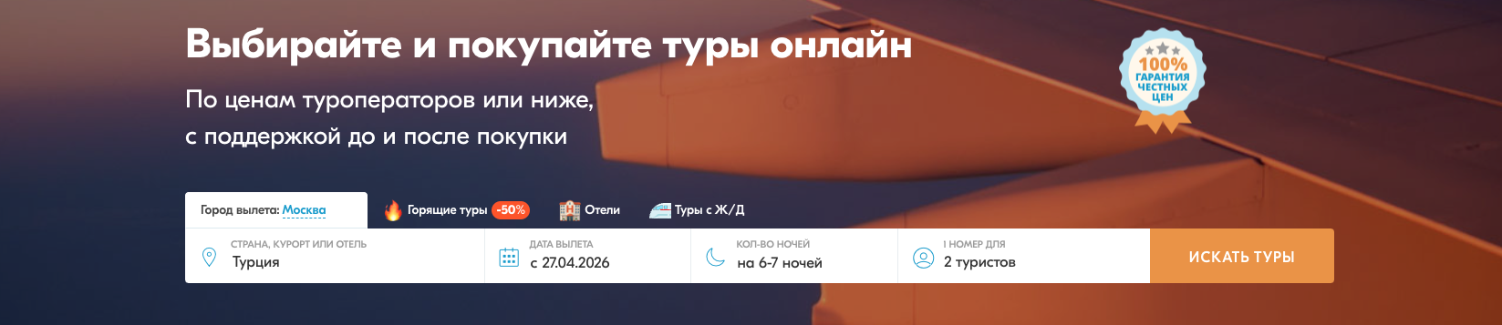 Гарантия лучшей цены: Если вы найдете точно такой же тур у другого агентства дешевле, сервис обещает снизить цену.